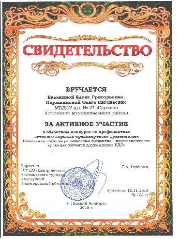 Воспитатели Балакина Е.Г., Плужникова О.Е. участники конкурса в номинации "Лучшая РППС для обучения дошкольников ПДД"