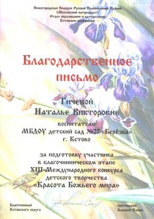 Благодарность Гичевой Н.В. за активное участие воспитанников в конкурсе
