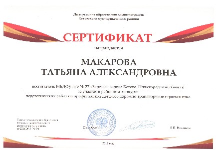 Благодарность Макаровой Т.А. за подготовку участников в конкурсе